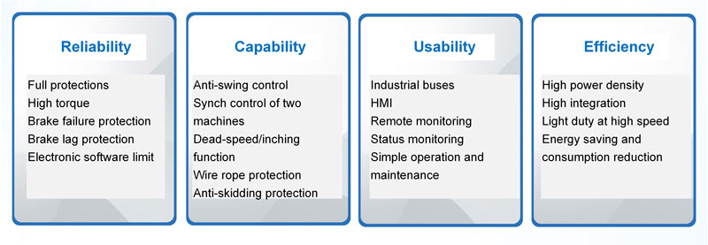 يتميز محرك الرافعة المتكامل من سلسلة CH610 بربط "حبل أمان" لرفع مع وظائفها الفريدة، وموثوقيتها العالية، وأدائها الممتاز، وسهولة تطبيقها، وكفاءتها المحسنة.
