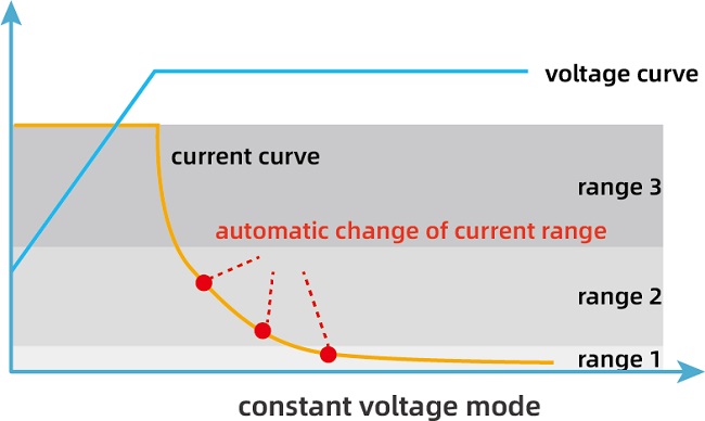 التبديل التلقائي لمستوى التيار في وضع الجهد الثابت دون مقاطعة الإخراج لتحسين دقة التيار وزيادة اتساق حالة حكم القطع.