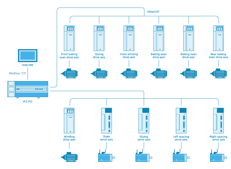 يُظهِر نظام طلاء الغراء المركب من VEICHI خبرته في تطبيقات الصناعة وابتكار المنتجات، حيث تتضمن المكونات الأساسية وحدة التحكم في الحركة VC5 ومحرك سيرفو SD700 ونظام محرك AC310. وبالتالي، من خلال التحكم الدقيق في المحاور مثل السحب واللصق واللف، فإنه يحقق إدارة سريعة ودقيقة وسريعة الاستجابة ومستقرة.